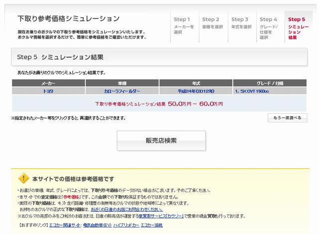 次に日産のホームページ、http://tradein.nissan.co.jp/MAKER/でも調べてみました。