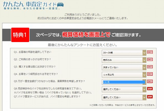 車の一括査定サイトは数ありますが、このサイトが唯一、入力後すぐに査定相場を教えてくれます。