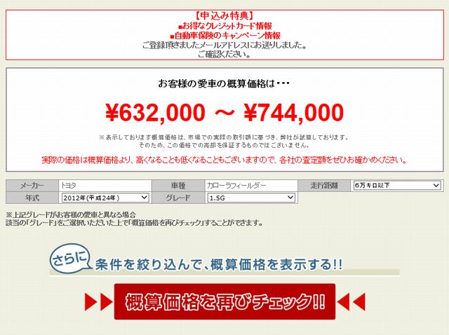 本当にアバウトな金額、しかも実際に下取りではつけないであろう価格が表示されました。